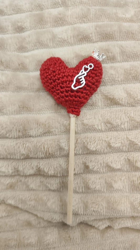 Wenn Herz auf Stolz trifft – entsteht Herzblut.Dieses kräftig rote Häkelherz am Stiel trägt sein Krönchen mit Würde – ein Symbol für innere Stärke, echte Gefühle und den Mut, zu zeigen, was einem wichtig ist.Ob als Geschenk für starke Menschen, Zeichen für Selbstliebe oder einfach als kleine Erinnerung: Du bist...