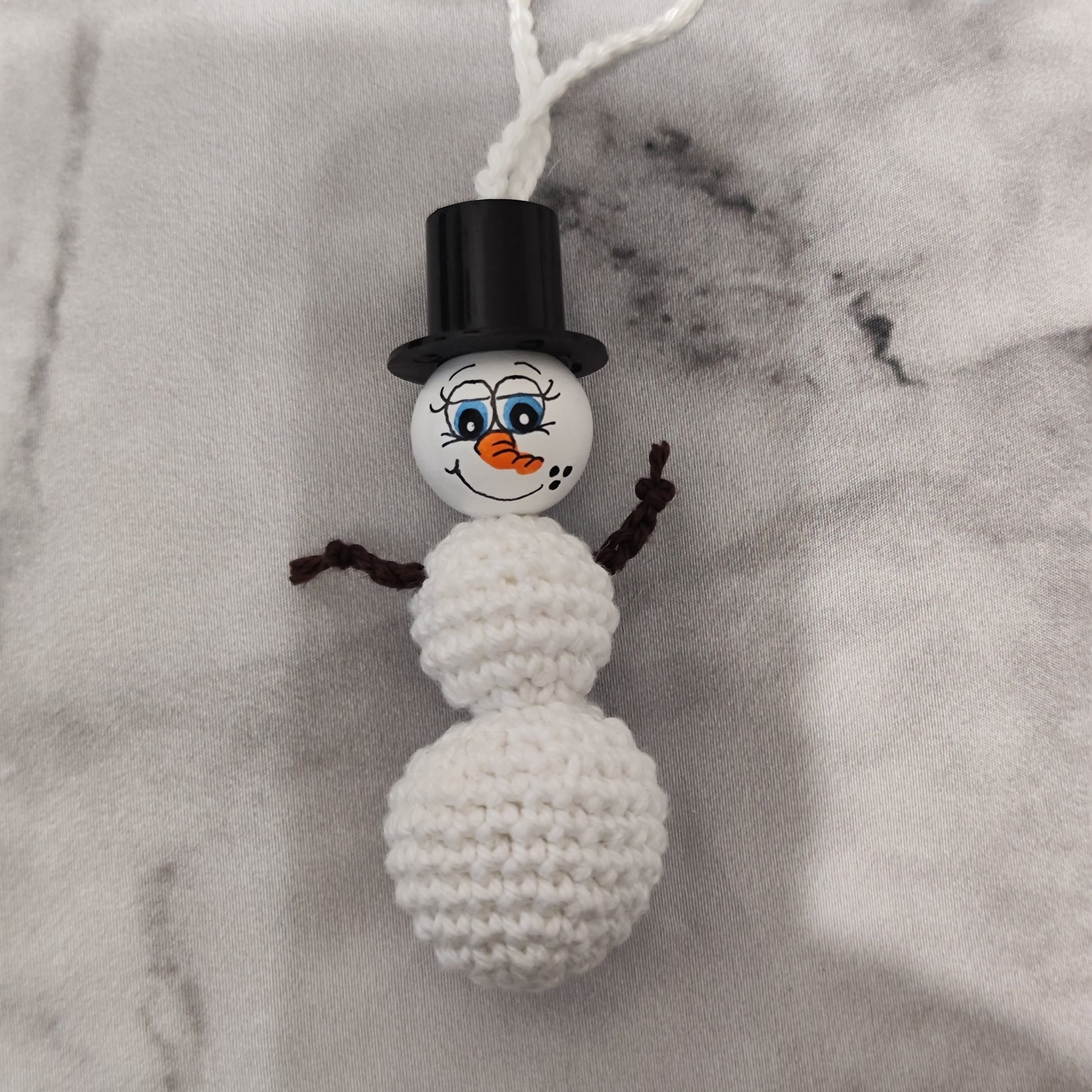 ☃️ Gehäkelter Schneemann – handgemachter Christbaumanhänger mit Zylinder