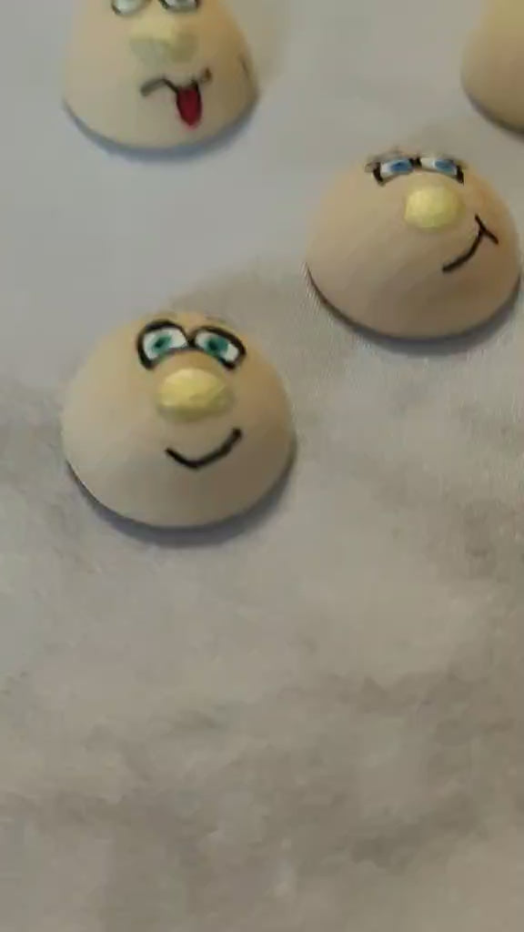 Set-Inhalt: 5 halbe Holzköpfchen mit goldener Nase