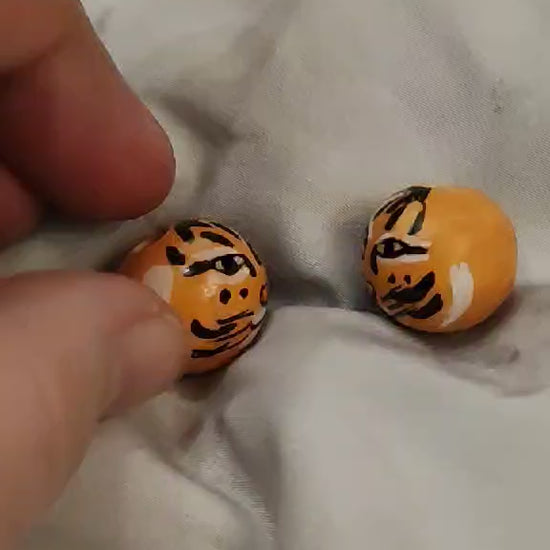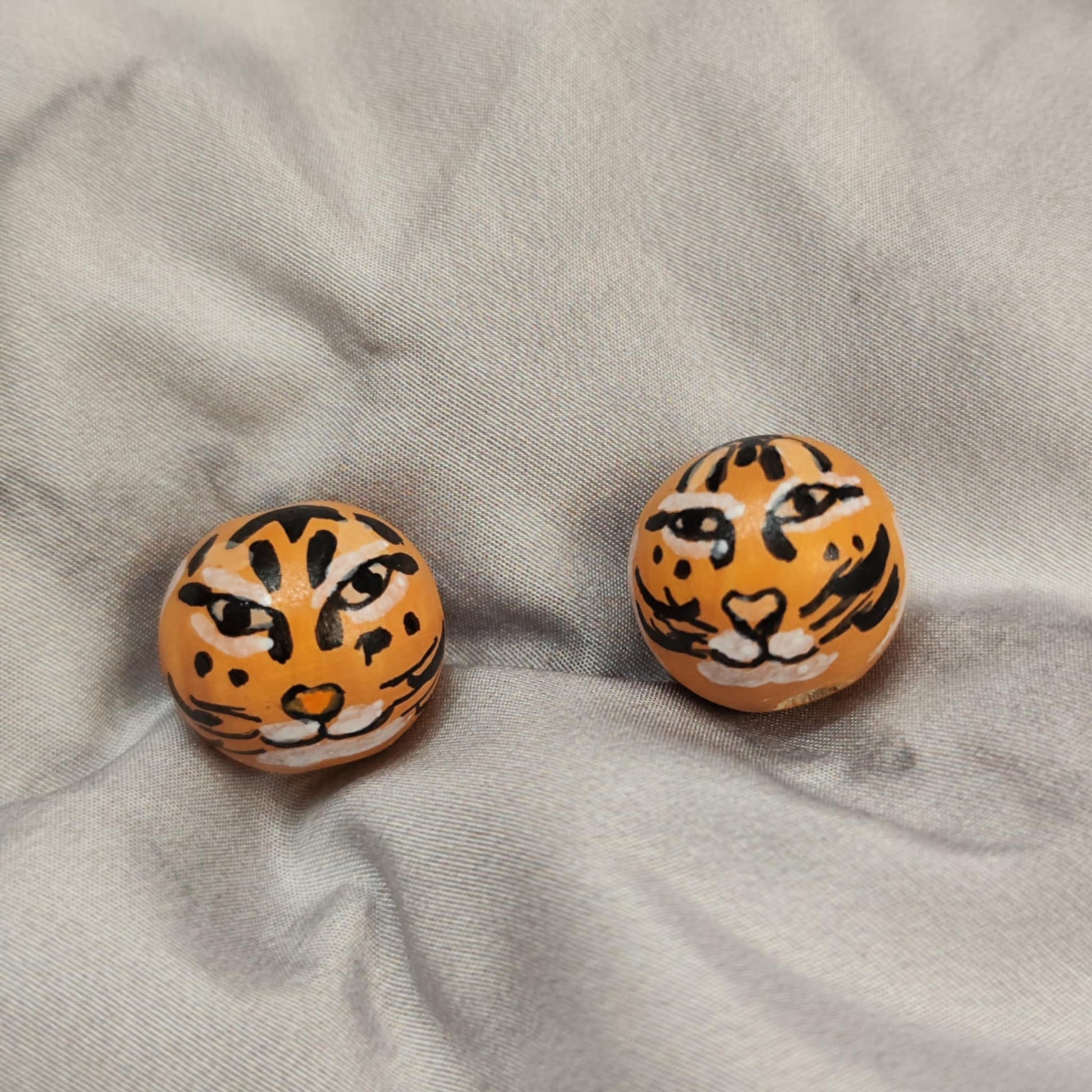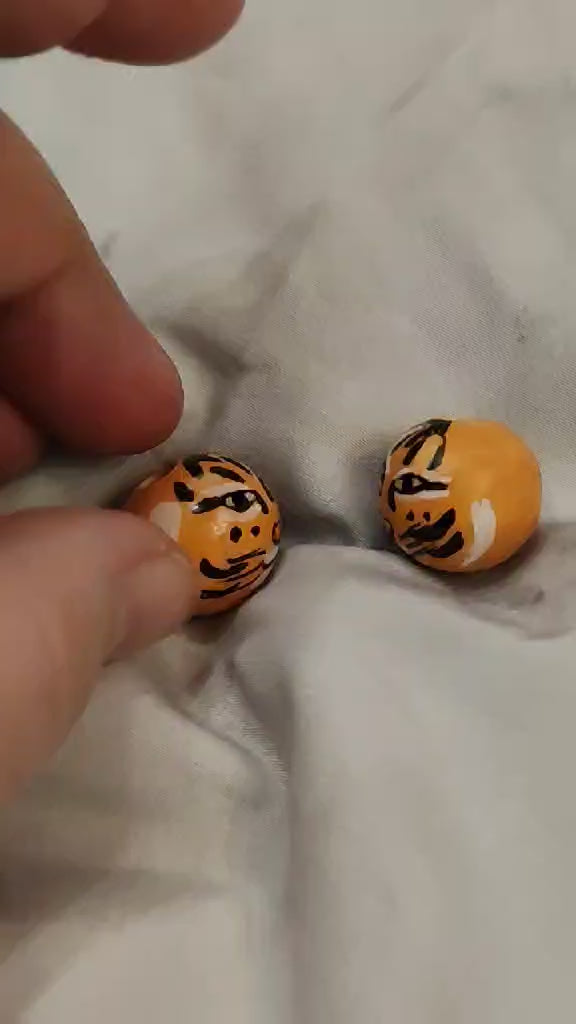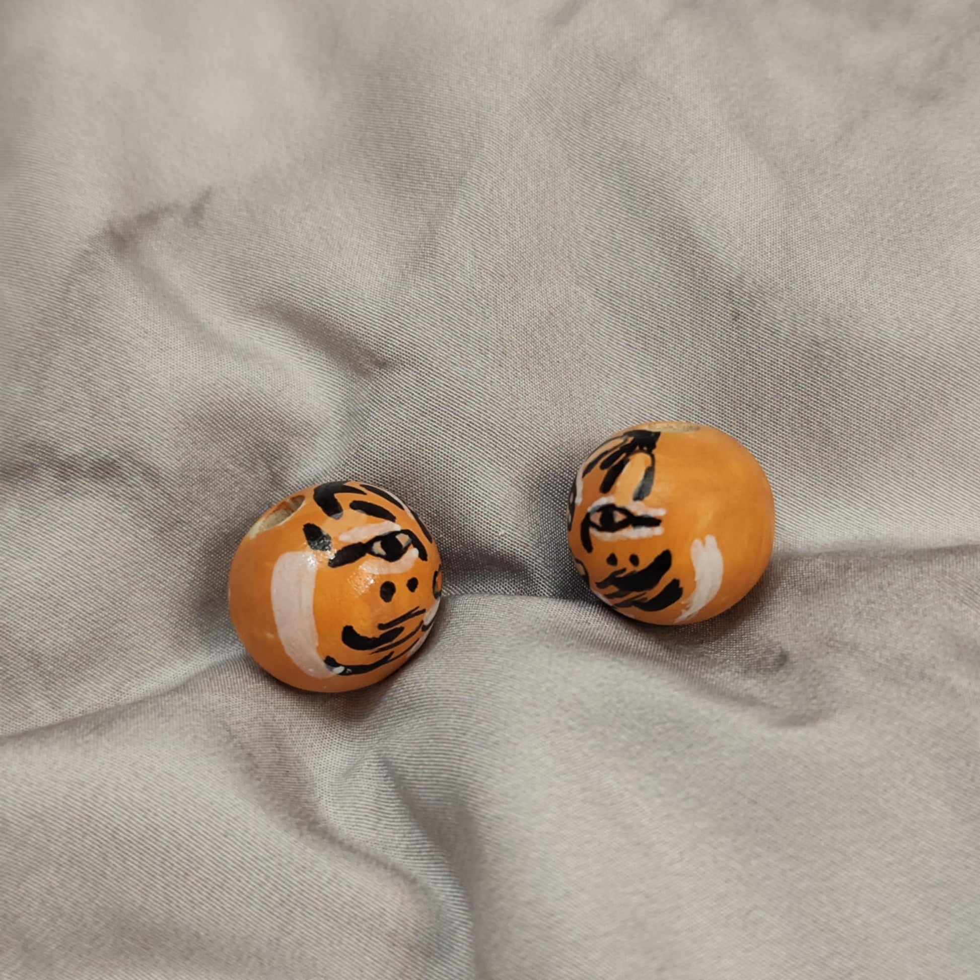 Das ca. 2 cm große Holzköpfchen wurde mit Acrylfarben liebevoll bemalt und mit speichelechtem Schutzlack (DIN EN 71-3) versiegelt. Jeder Tiger ist ein Unikat – Streifenführung & Gesichtsausdruck variieren leicht.