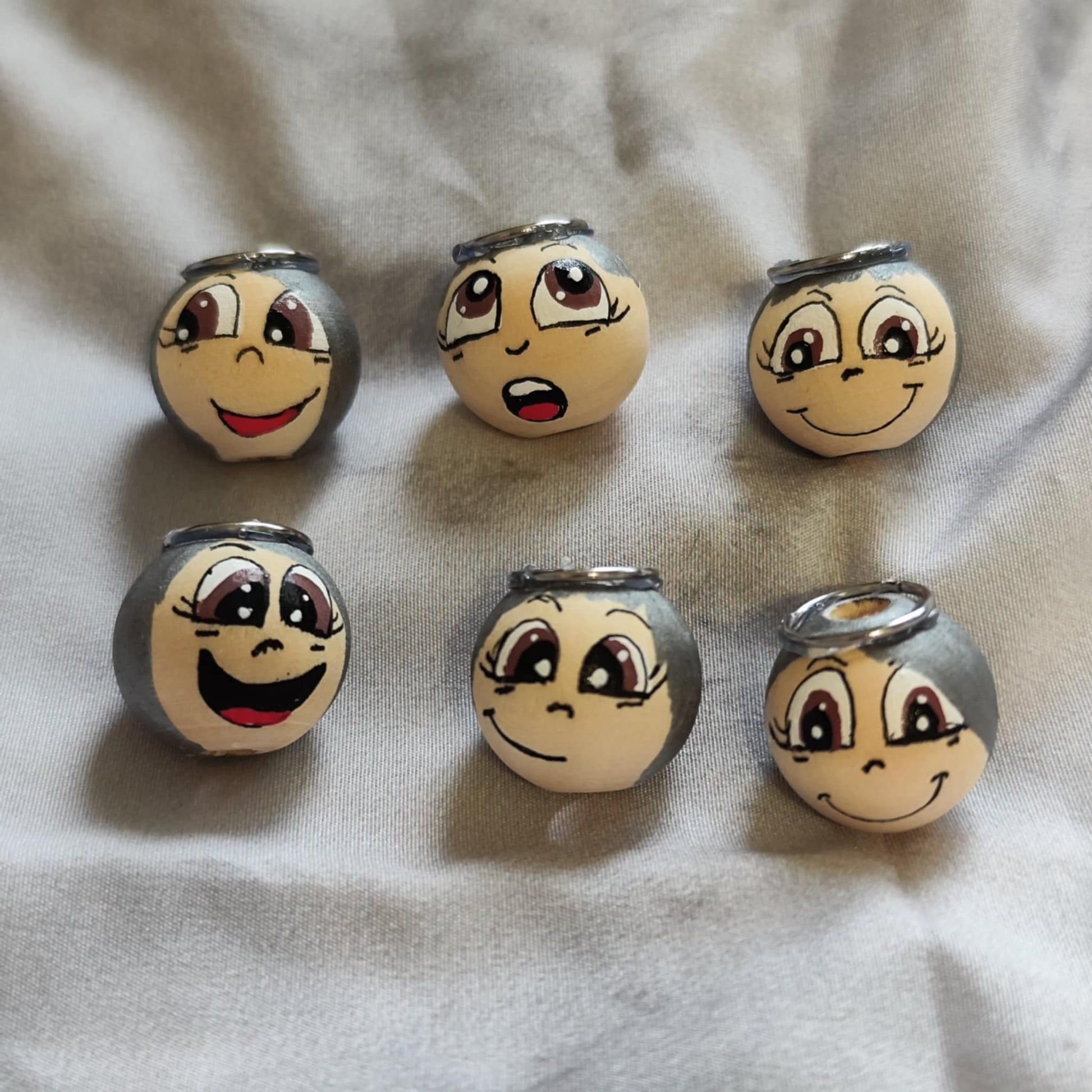 Jedes Köpfchen ist mit Acrylfarben handbemalt und mit speichelfestem Schutzlack (DIN EN 71-3) versiegelt. Abweichungen in Mimik, Silberton oder Darstellung auf Fotos sind möglich – und gewollt: Denn jedes Stück ist ein Unikat.