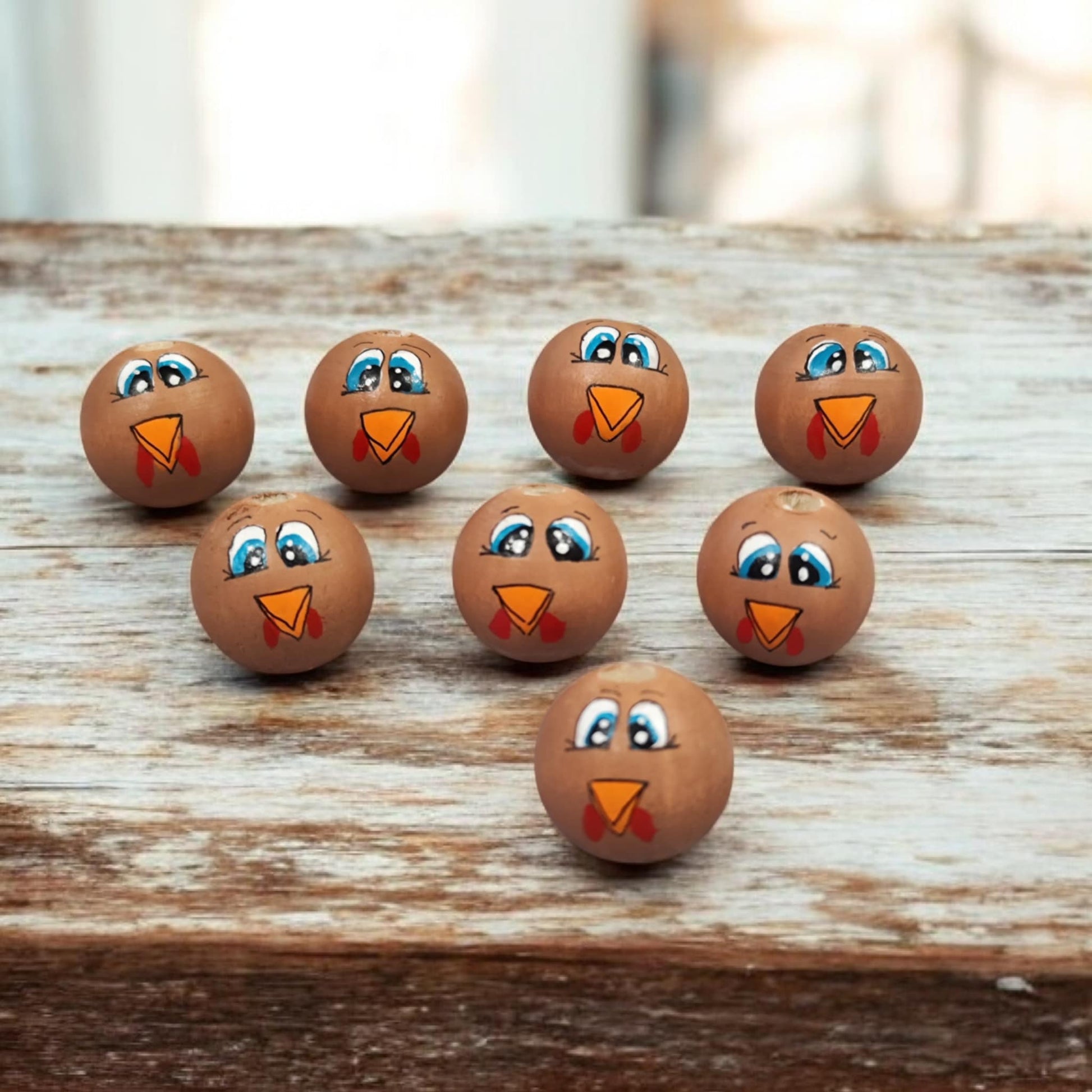 Handbemalte Gockel-Holzköpfchen (2 cm oder 2,5 cm) in Braun – Für deine Sorgenwürmchen