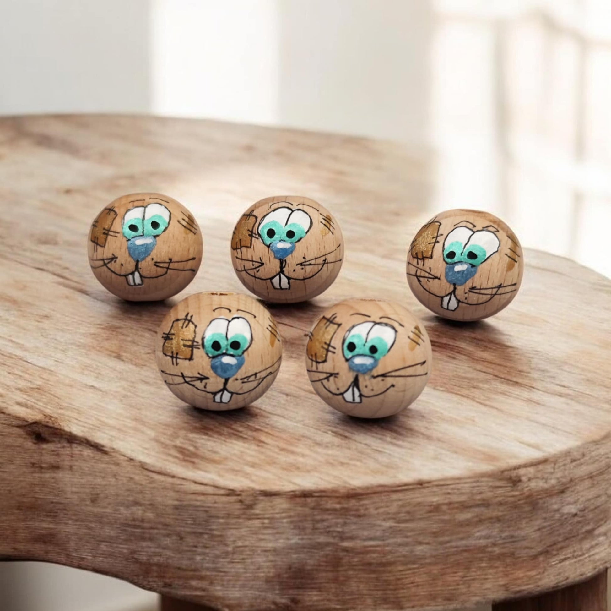 Was macht sie besonders? Jedes Köpfchen wird einzeln von Hand bemalt. Kein Gesicht gleicht dem anderen – jedes hat seinen eigenen Charakter und Ausdruck. Die natürliche Buchenholz-Maserung bleibt sichtbar und verleiht jedem Häschen seinen individuellen Look. Die aufgemalten Flicken und Nähte machen jedes Häschen zu einem kleinen Kunstwerk mit ganz viel Herz. Durch die Versiegelung mit speichelfestem Lack sind die Köpfchen langlebig und geschützt.