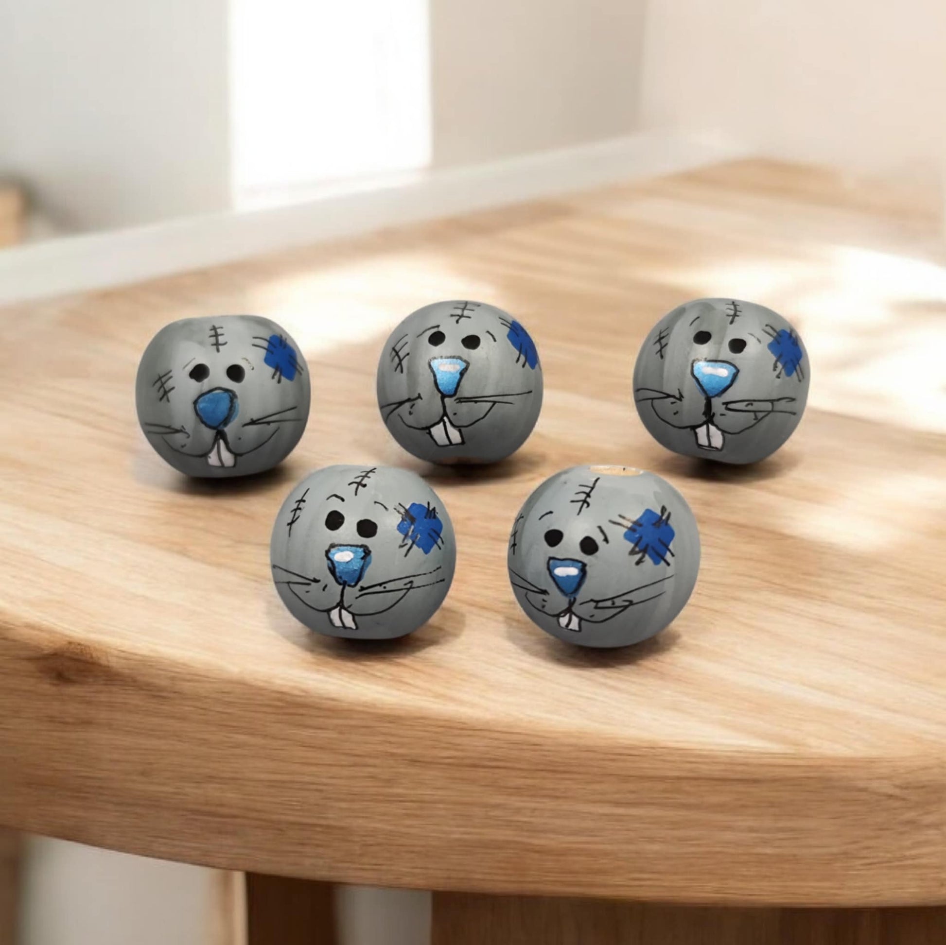 Handbemalte Häschen-Holzköpfchen (2 cm oder 2,5 cm) im Patch-Style in Grau – Für deine Sorgenwürmchen