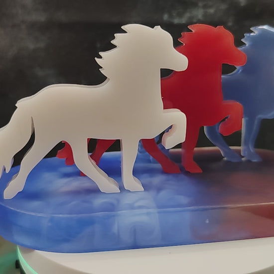 This tricolor herd of tölters is more than just decoration—it's a small homage to Iceland and its unique horses. The three Icelandic horses symbolize the colors of the Icelandic national flag: red, white, and blue. Whether for the World Cup, for national fans, or simply because you have Iceland in your heart—this trio is a real eye-catcher for any home, office, or stable office.