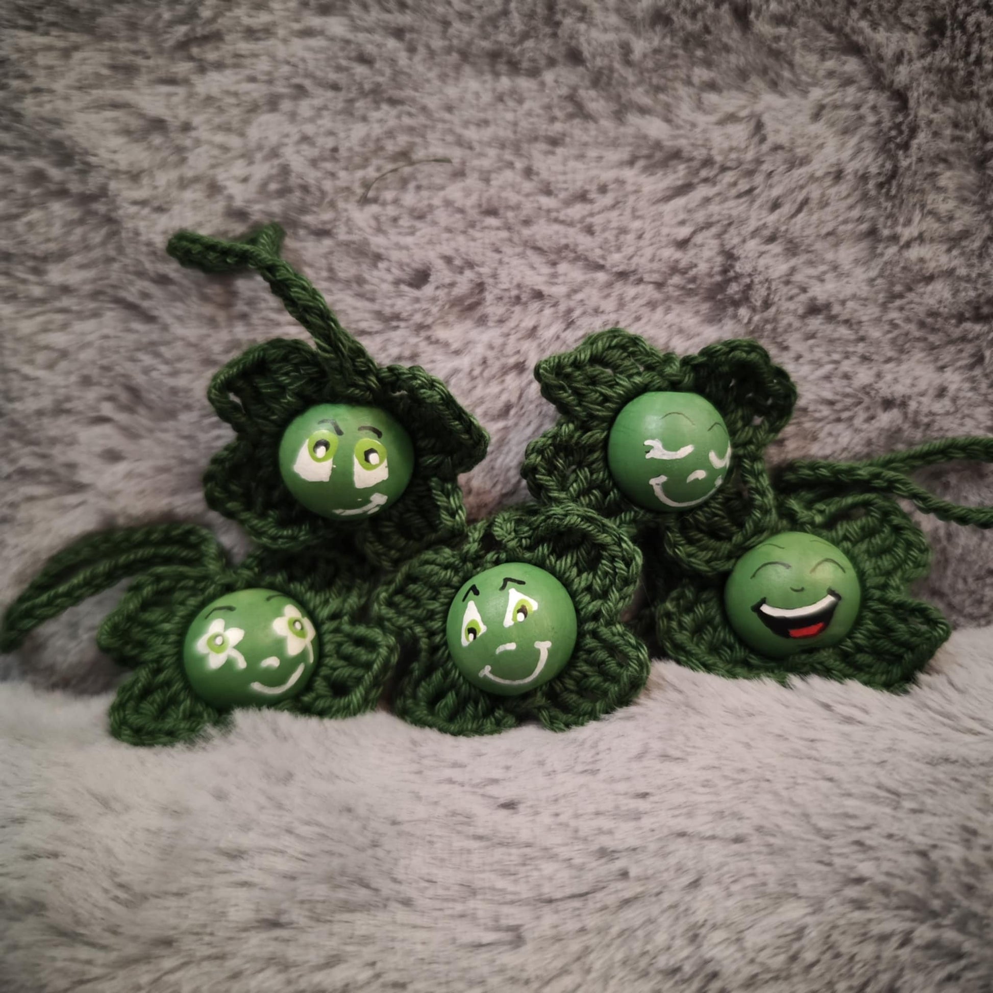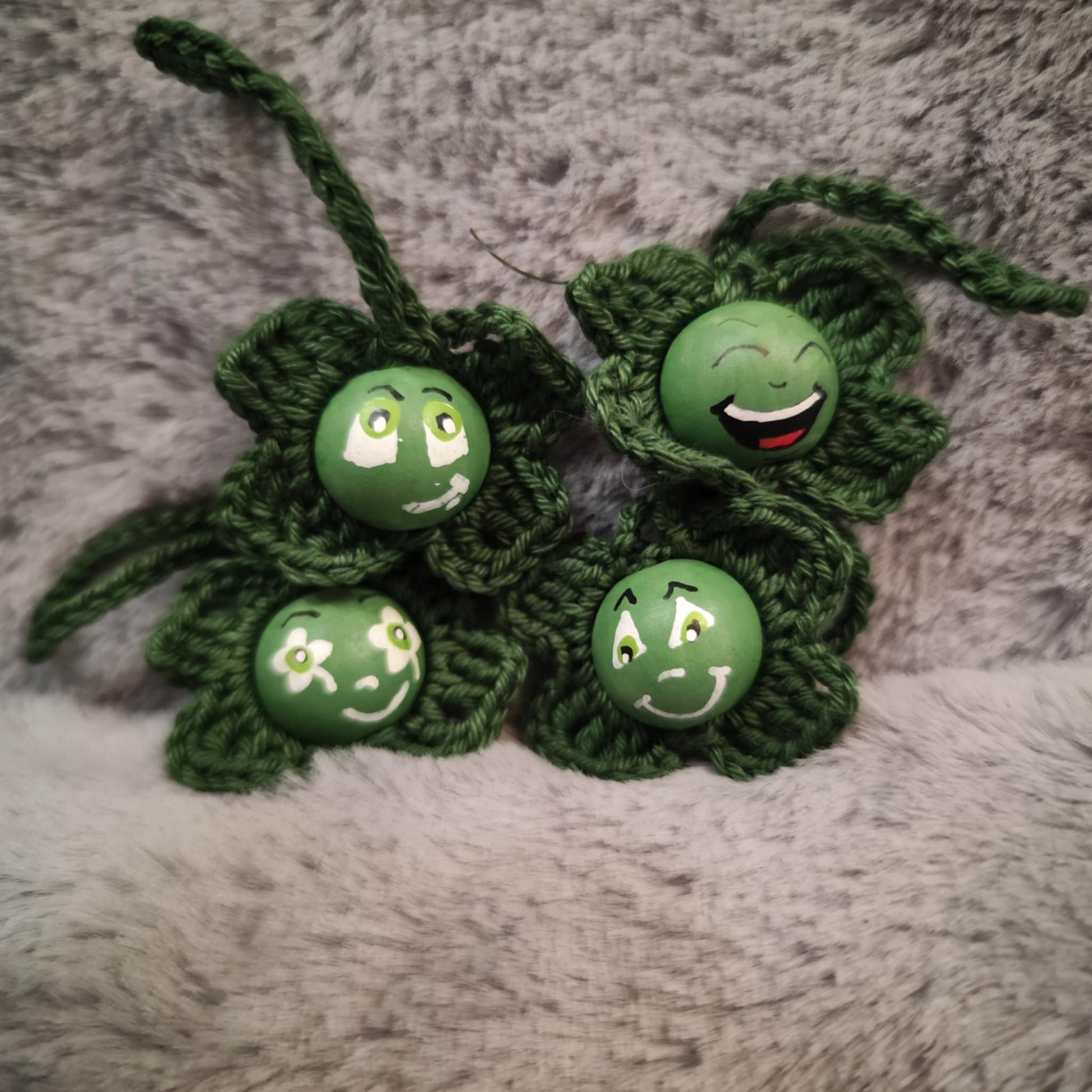 Kleeblatt-Würmchen – Dunkelgrün (handbemalt & gehäkelt)