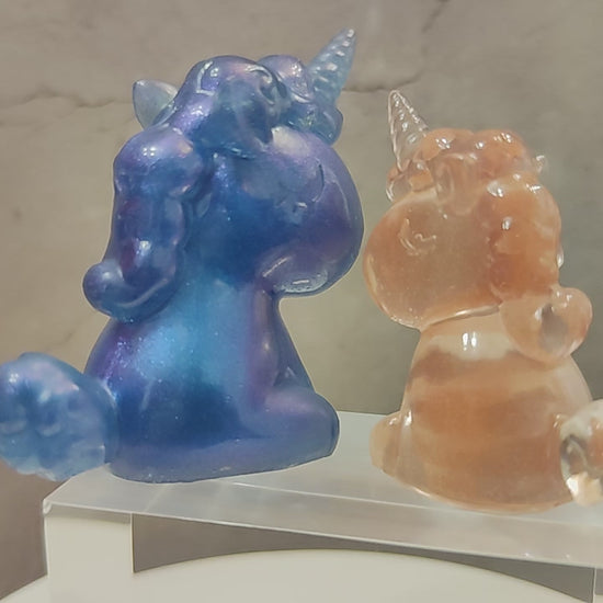 Do you love unicorns? Then this set of two sparkling decorative unicorns is just right for you! Each piece is handmade from high-quality epoxy resin—with shimmering colors, imaginative pigment gradients, and meticulous attention to detail.
