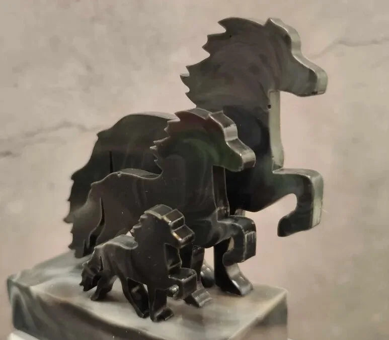 This decorative item is perfect for any Icelandic horse enthusiast who wants to bring the fascination of the Icelandic horse into their home. This small herd of tölters in elegant marble black is a real eye-catcher – simple, stylish, and unusual.