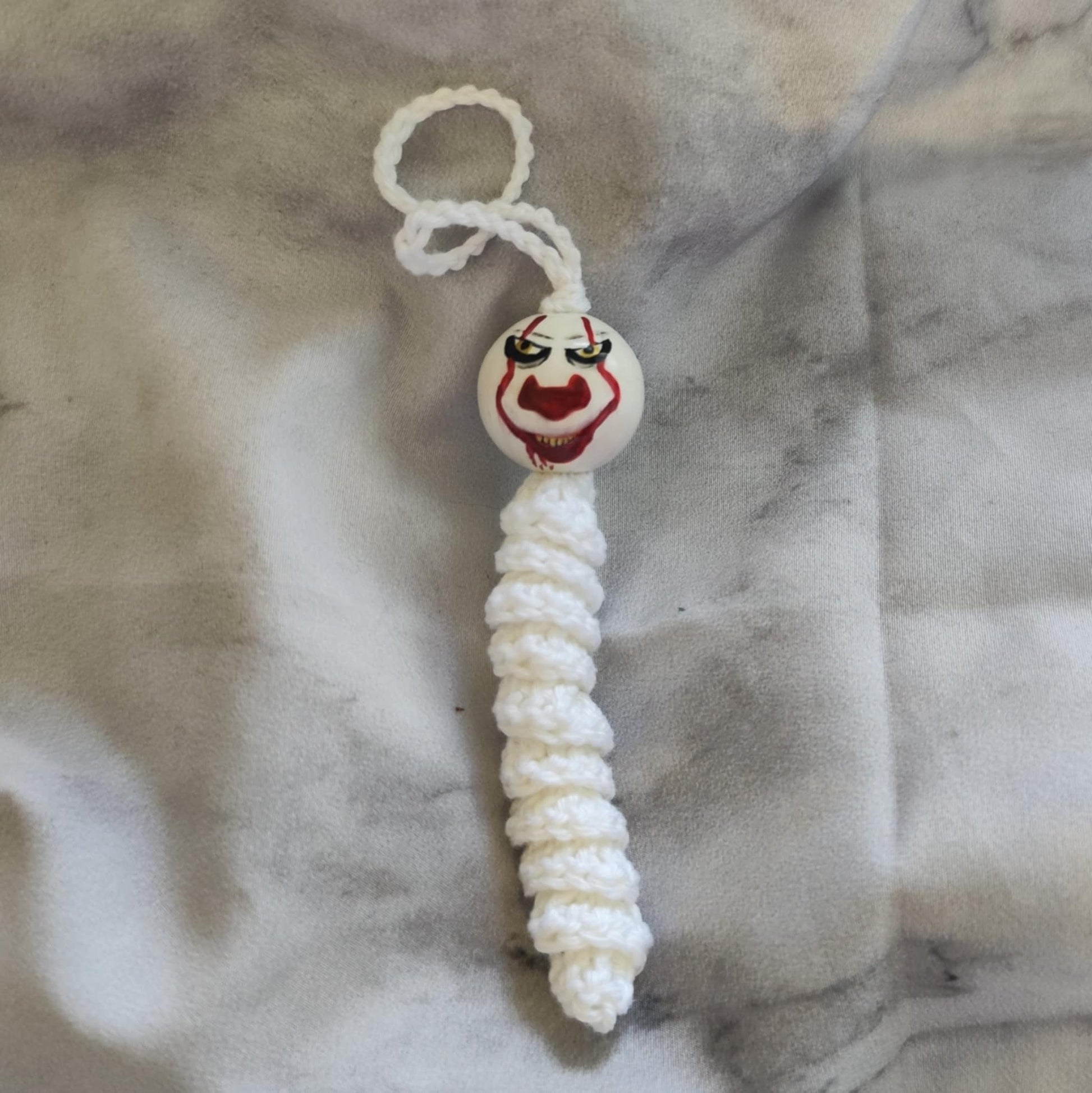Das Sorgenwürmchen im Horrorclown-Stil ist ein außergewöhnliches Sammlerstück für alle, die das Gruselige mit einem Augenzwinkern mögen.