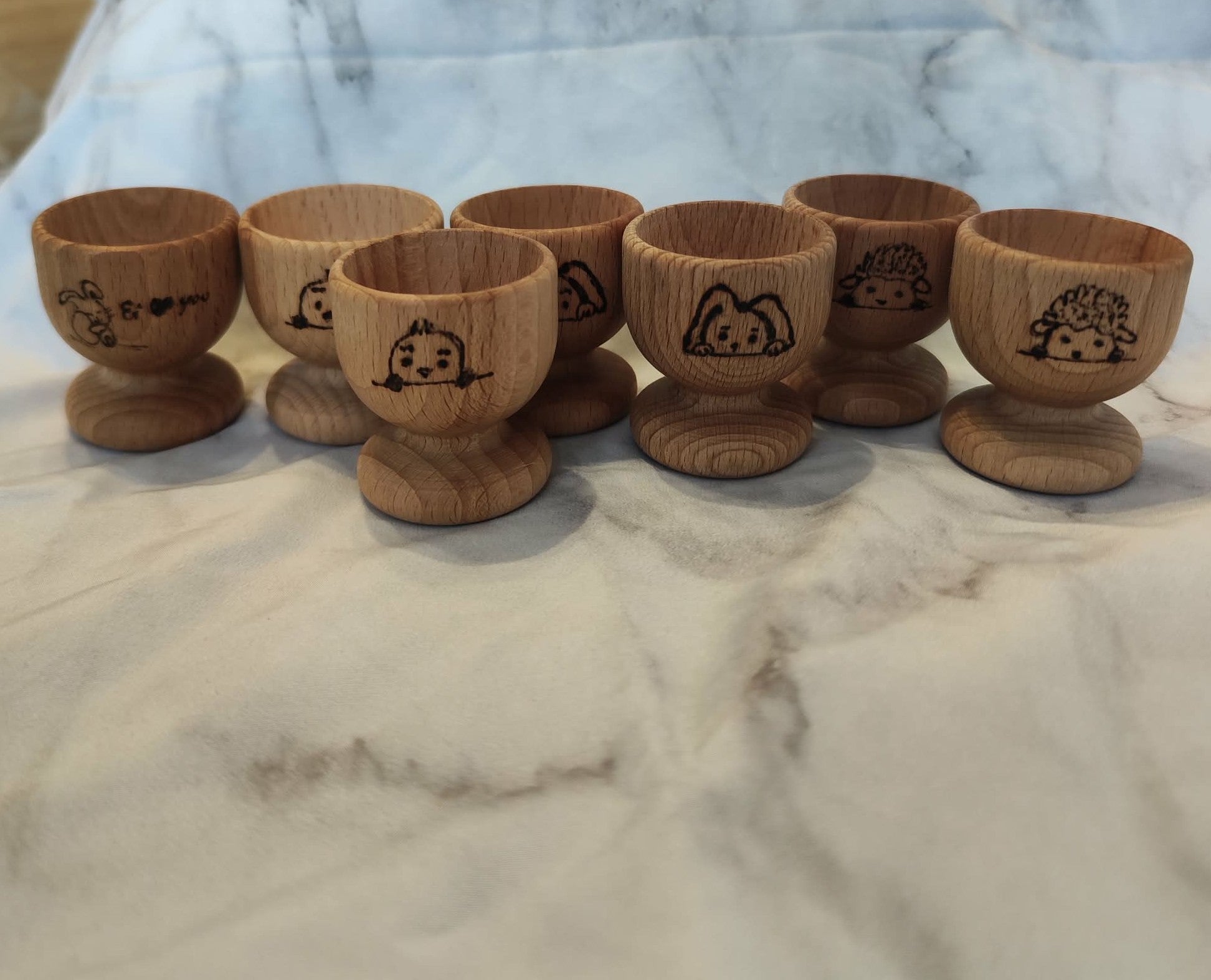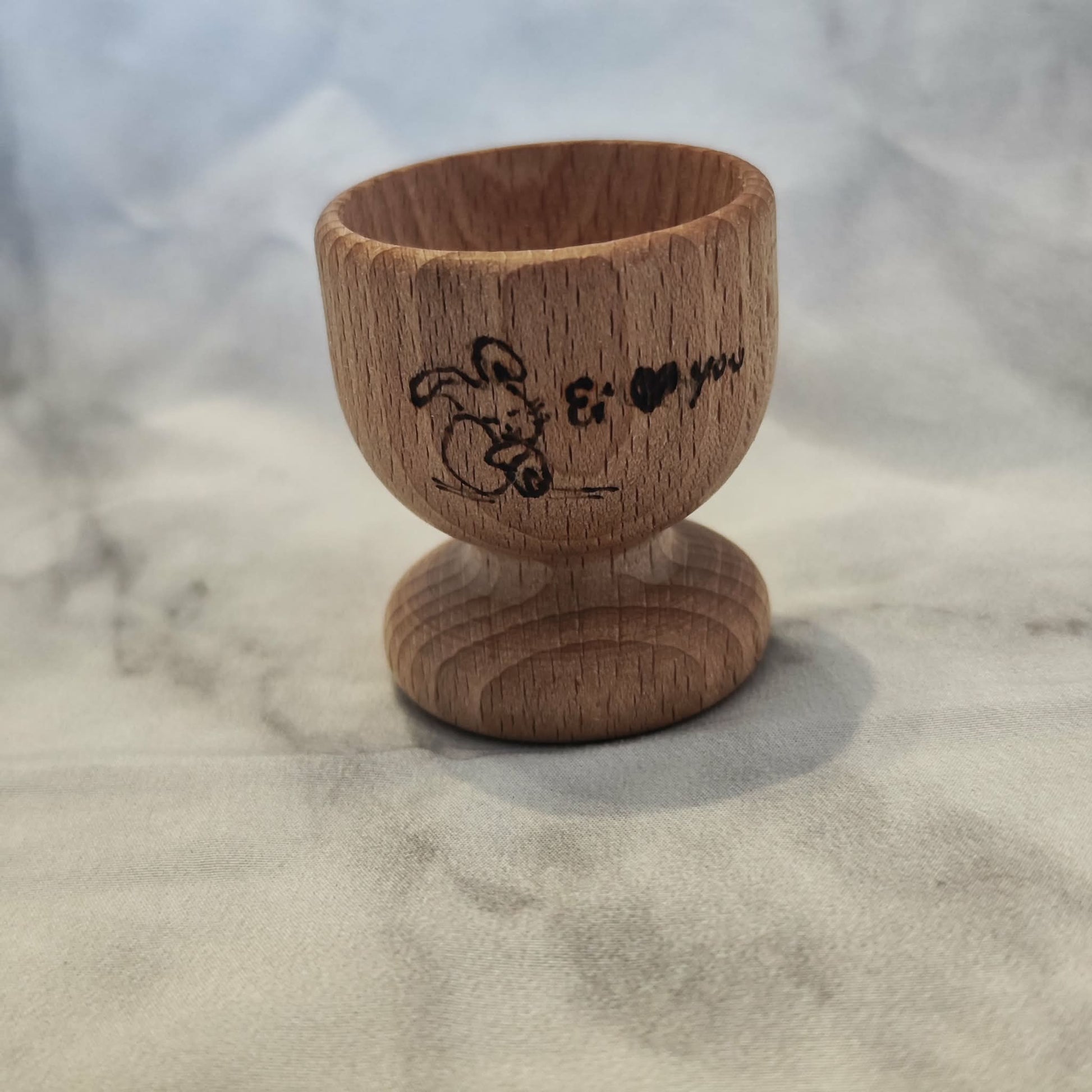 Eierbecher aus Buchenholz mit Brandmalerei – verschiedene Motive