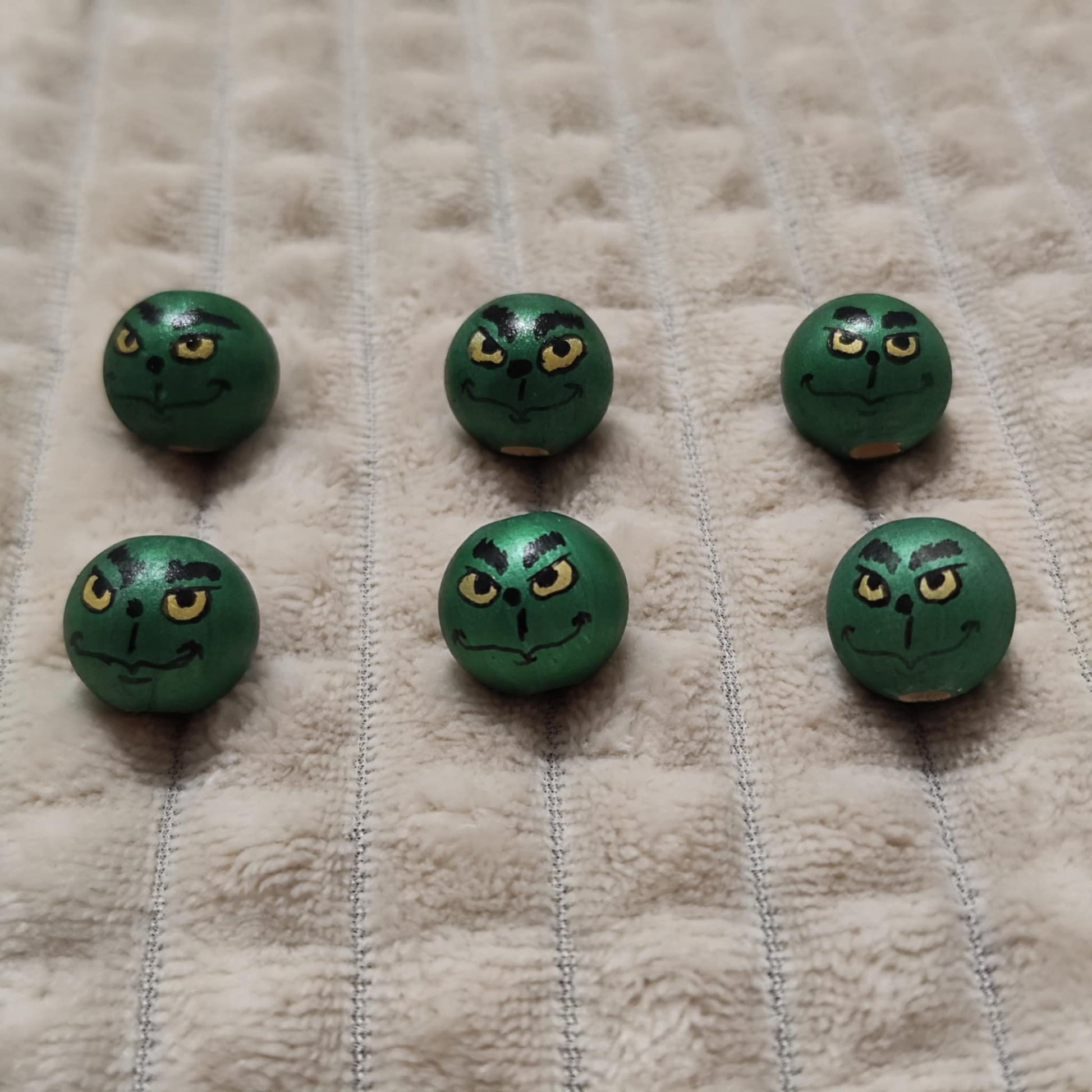 Diese handbemalten Holzköpfchen im 6er-Set setzen ein starkes Statement in der Weihnachtszeit. Mit metallic-grünem Schimmer und goldenen Augen versehen, bringen sie einen frechen, aber edlen Akzent in deine Bastelideen. Jedes Köpfchen wird sorgfältig per Hand bemalt und ist ein echtes Unikat – inklusive speichelfestem Schutzlack nach DIN EN 71-3.