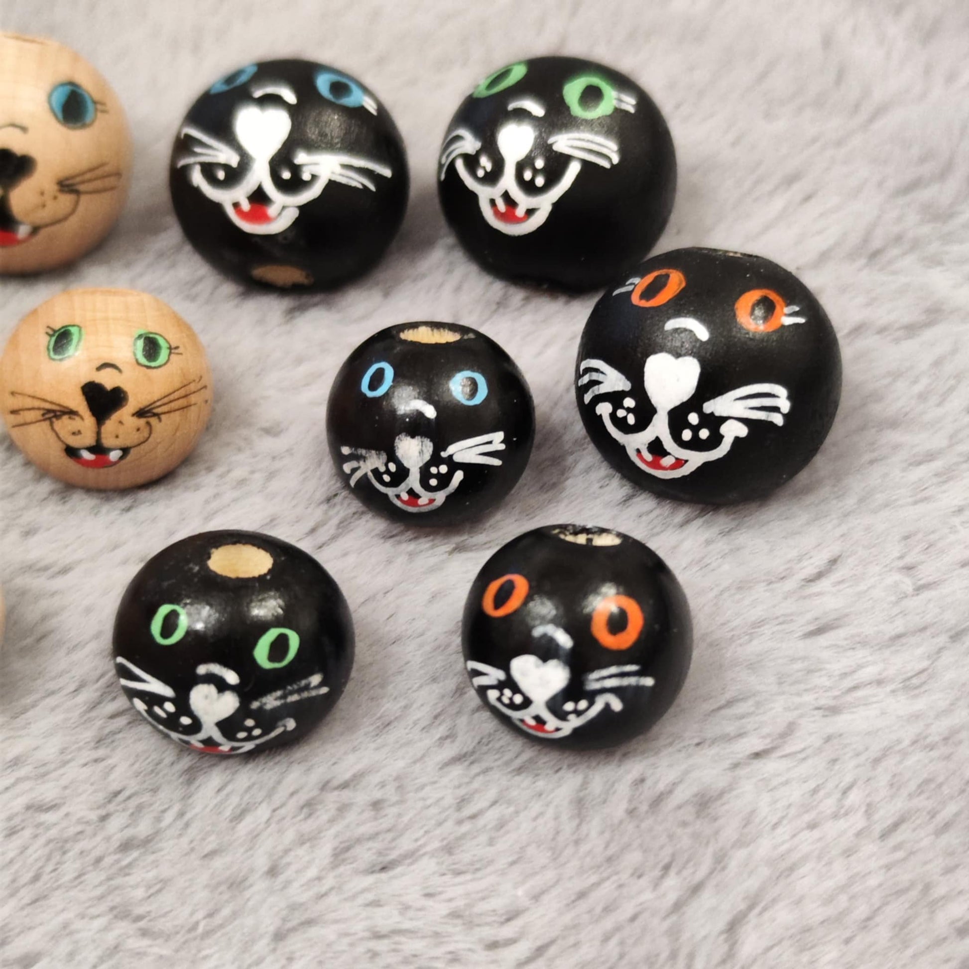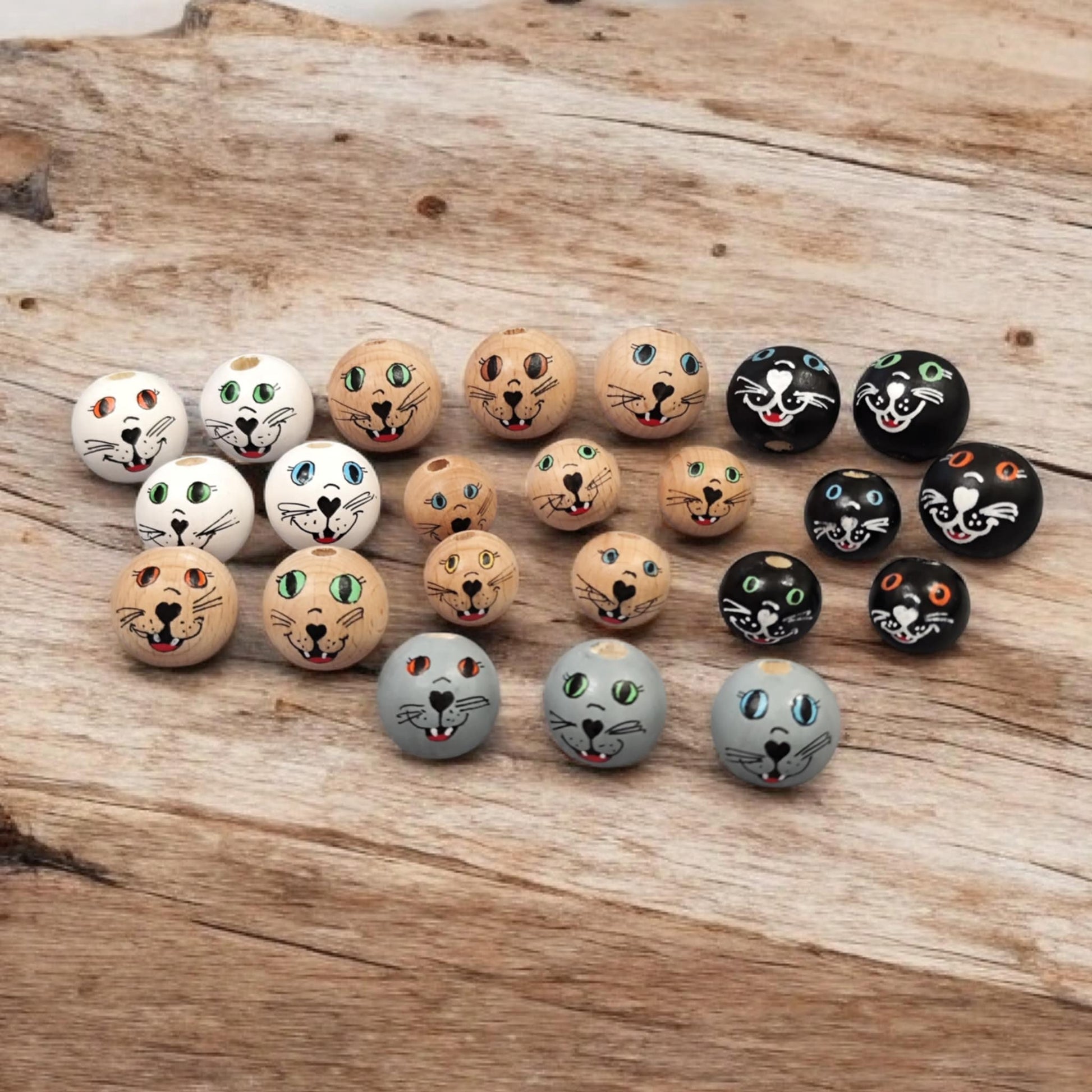 Handbemalte Katzen-Holzköpfchen (2 cm oder 2,5 cm) mit Zähnchen – Für deine Sorgenwürmchen