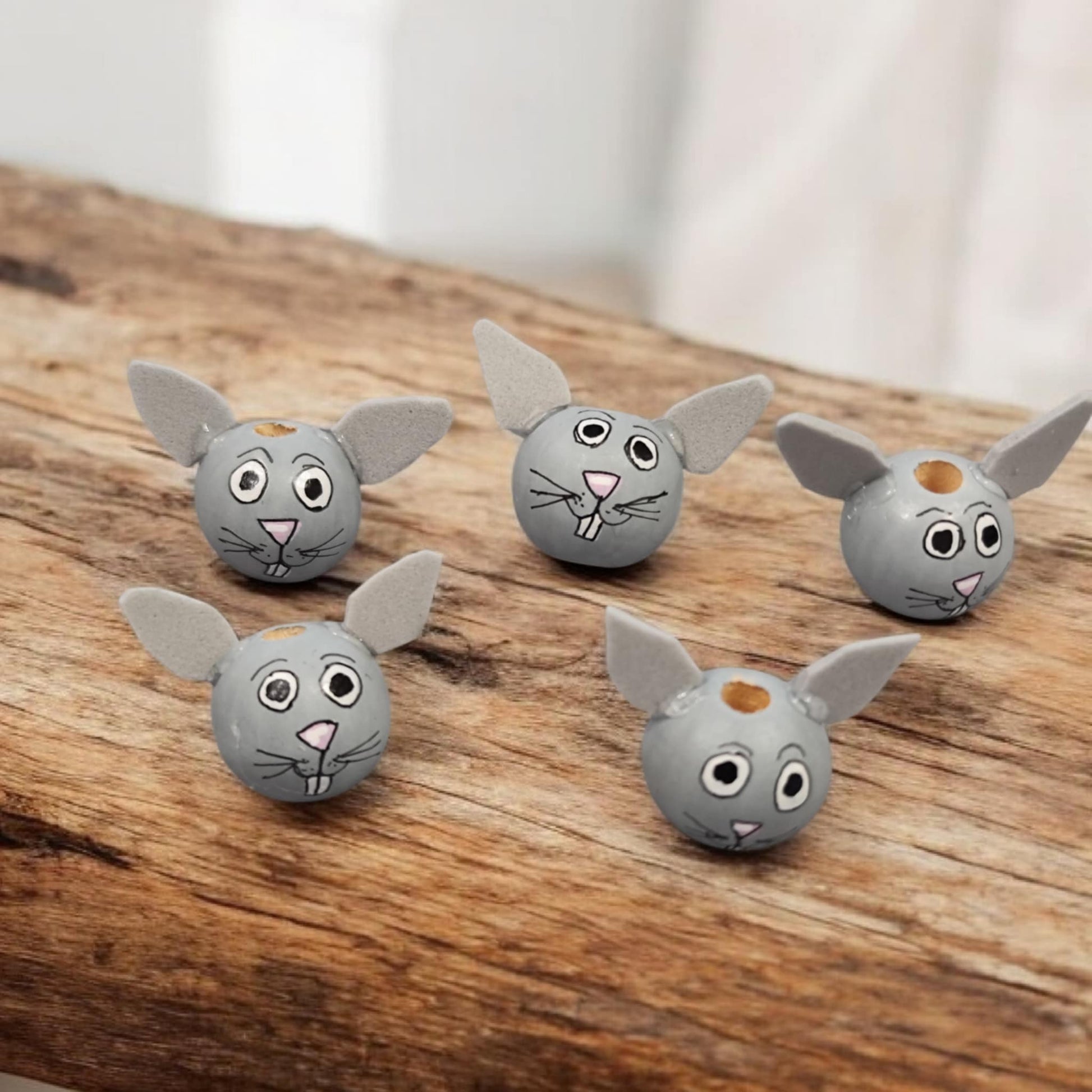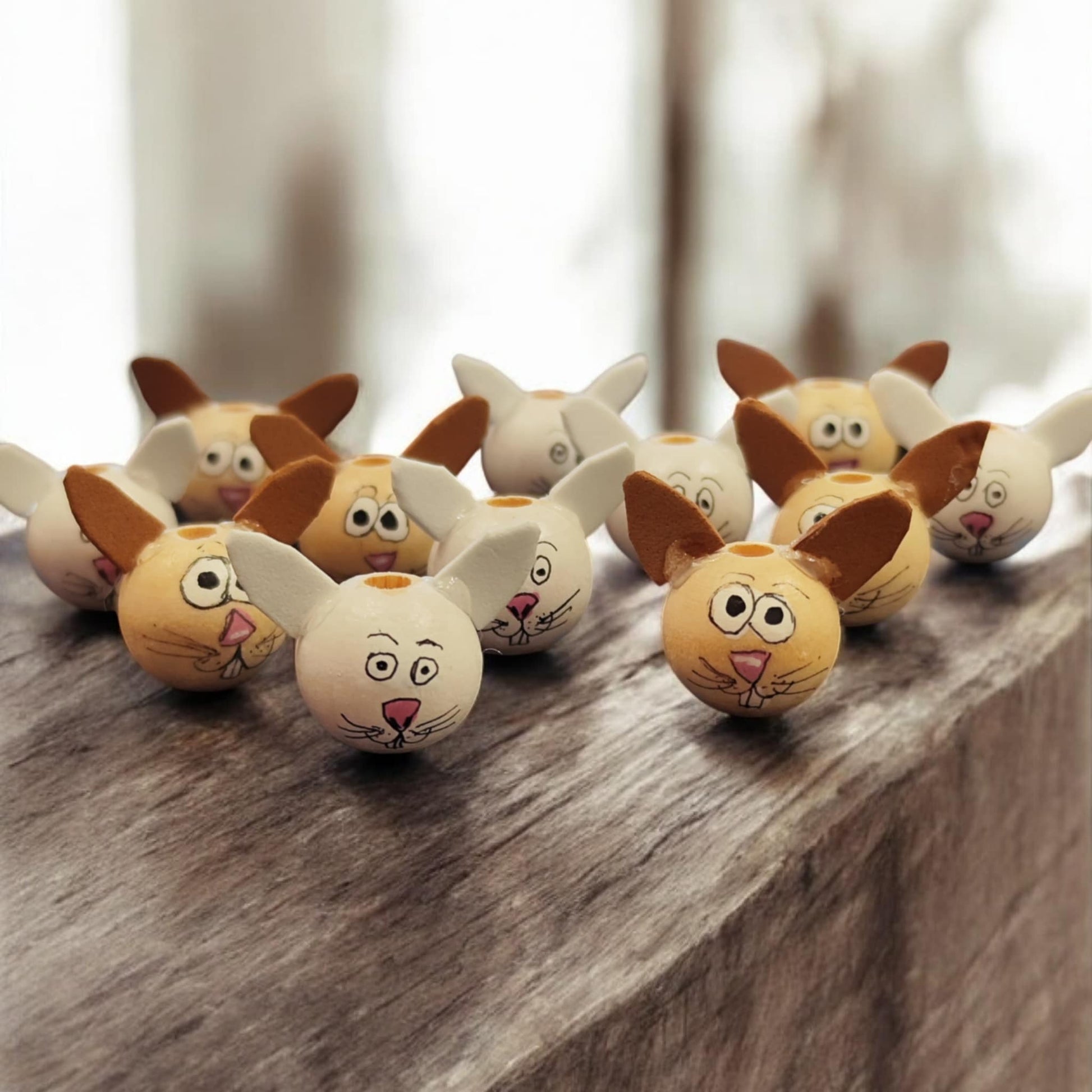 Häschen mit Ohren (2 cm oder 2,5 cm) – Handbemalte Holzperlen