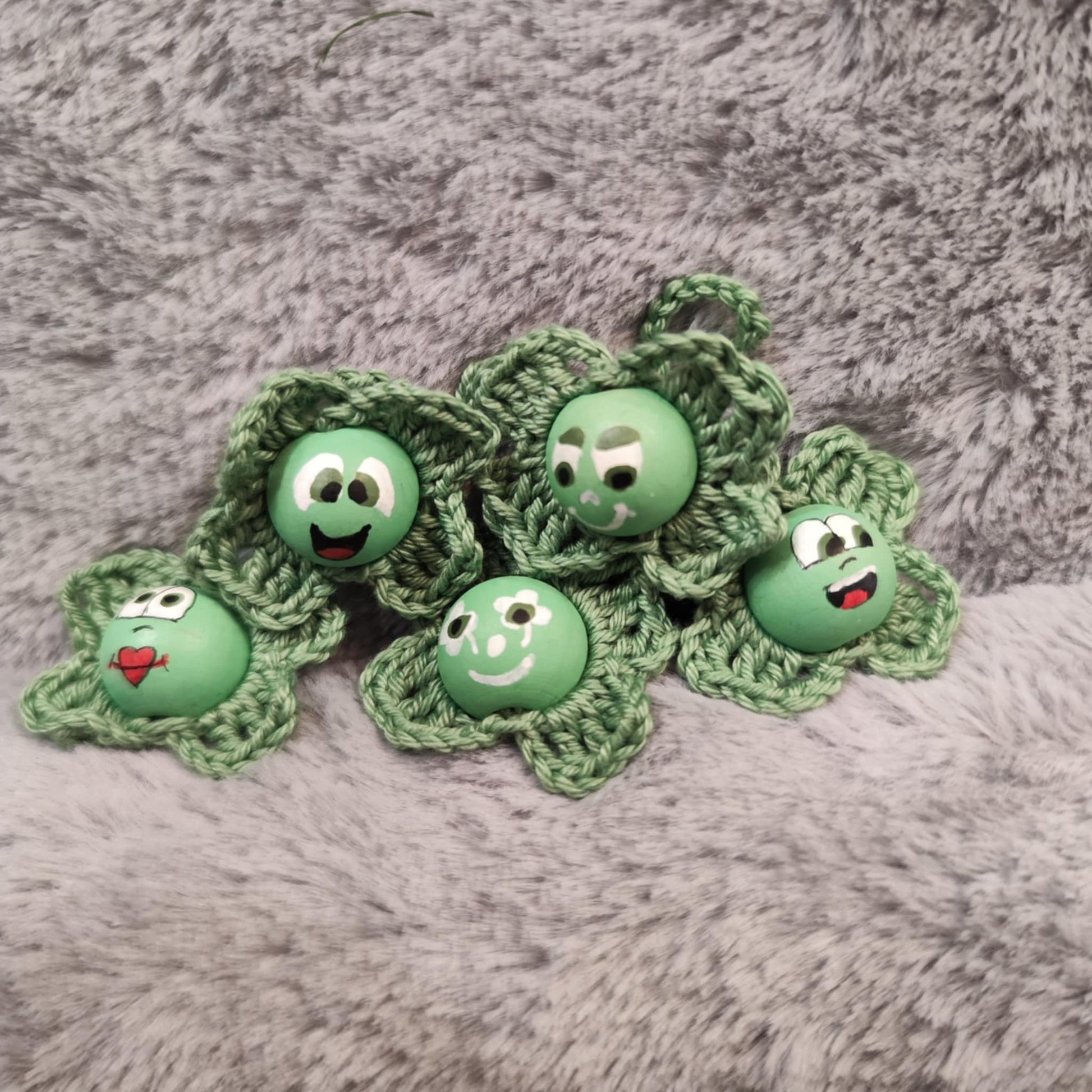 Kleeblatt-Würmchen – Hellgrün (handbemalt & gehäkelt)
