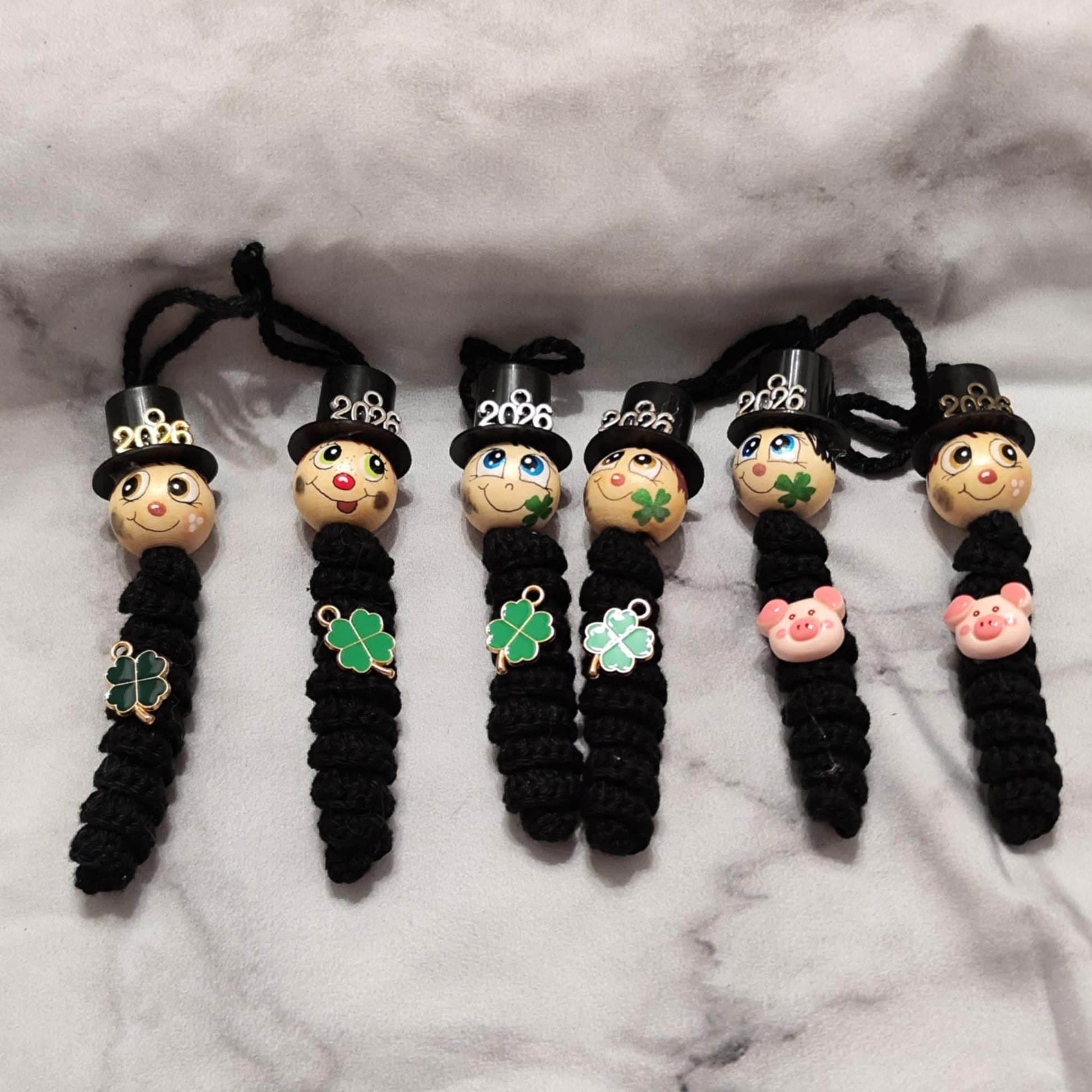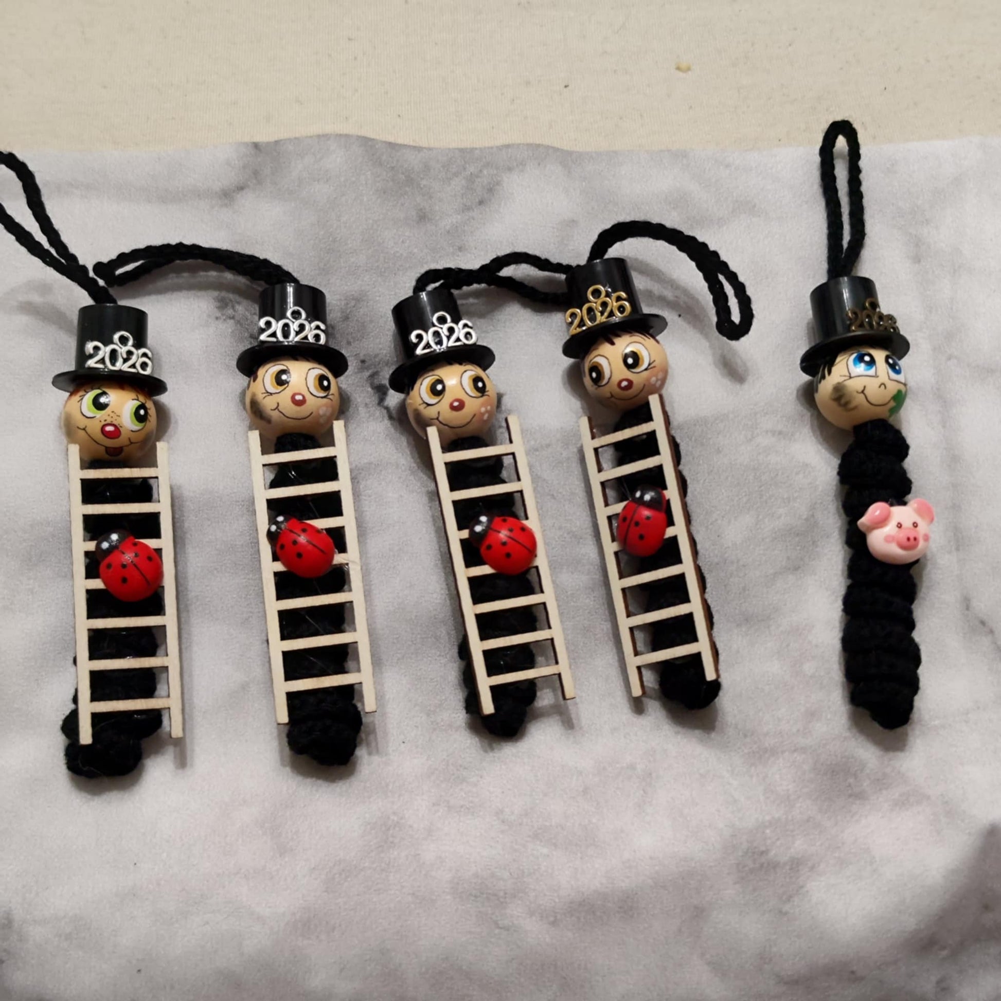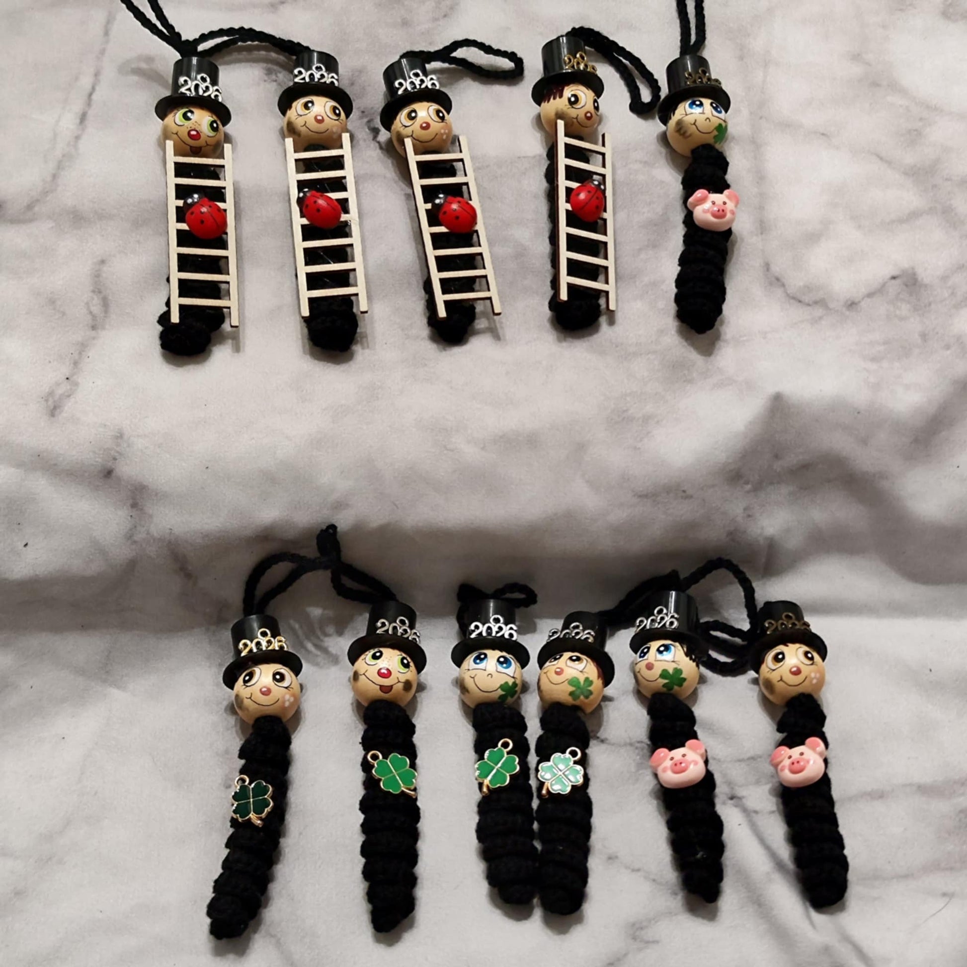 Ein echter Klassiker unter den Glücksbringern: Der längliche Rauchfangkehrer aus Garn, mit 2 cm Holzköpfchen, schwarzem Häkelkörper und Zylinder aus Kunststoff. Dieses Sorgenwürmchen steht für Neuanfang, Glück und das Besondere zum Jahreswechsel.