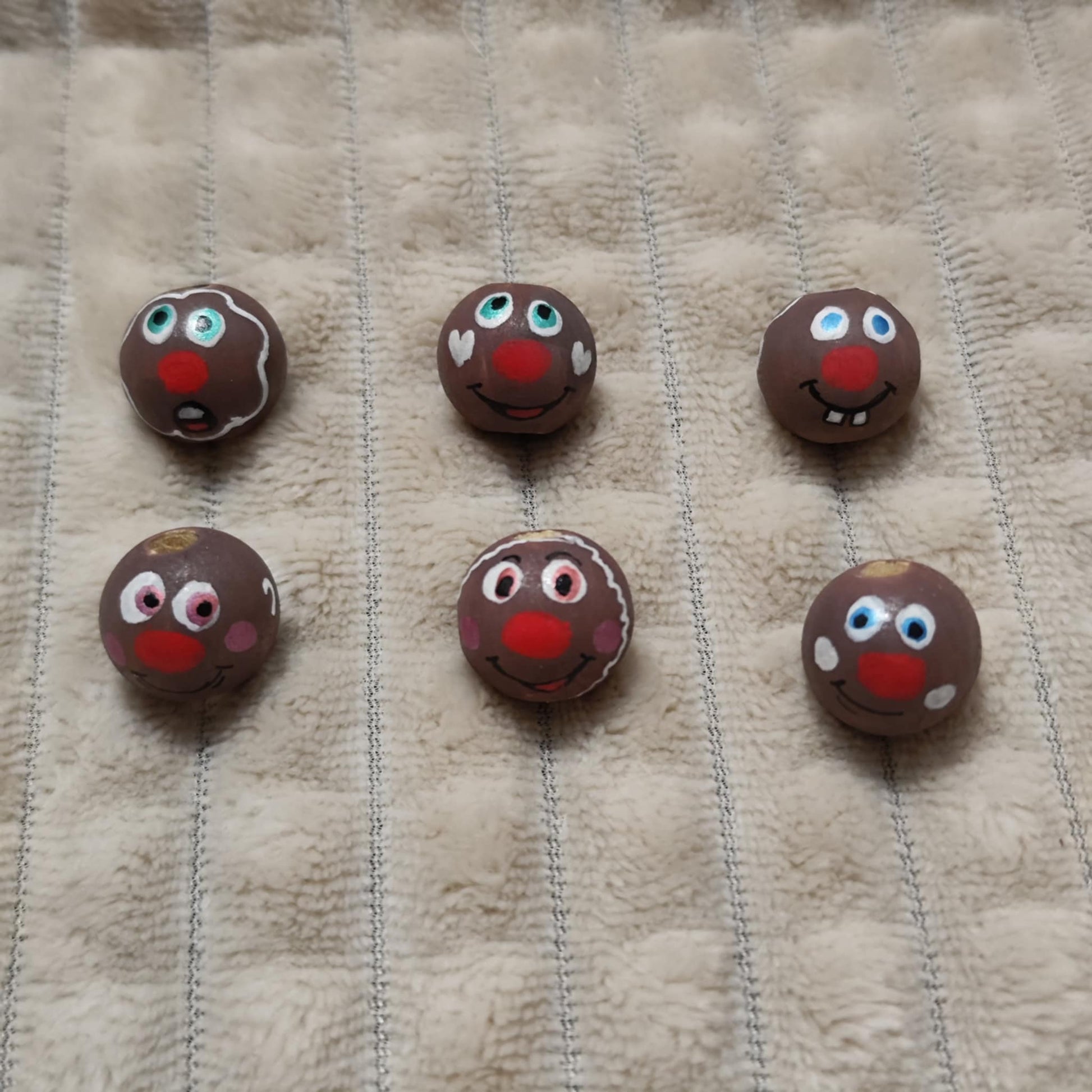 Dieses 6er-Set liebevoll bemalter Holzköpfchen im klassischen Lebkuchen-Stil bringt eine süße Note in deine DIY-Welt. Mit Zuckerguss-Details, charmanten Gesichtern und sorgfältiger Handarbeit eignen sich diese Köpfe hervorragend für winterliche Bastelprojekte, kreative Deko oder als Ergänzung für Sorgenwürmchen.