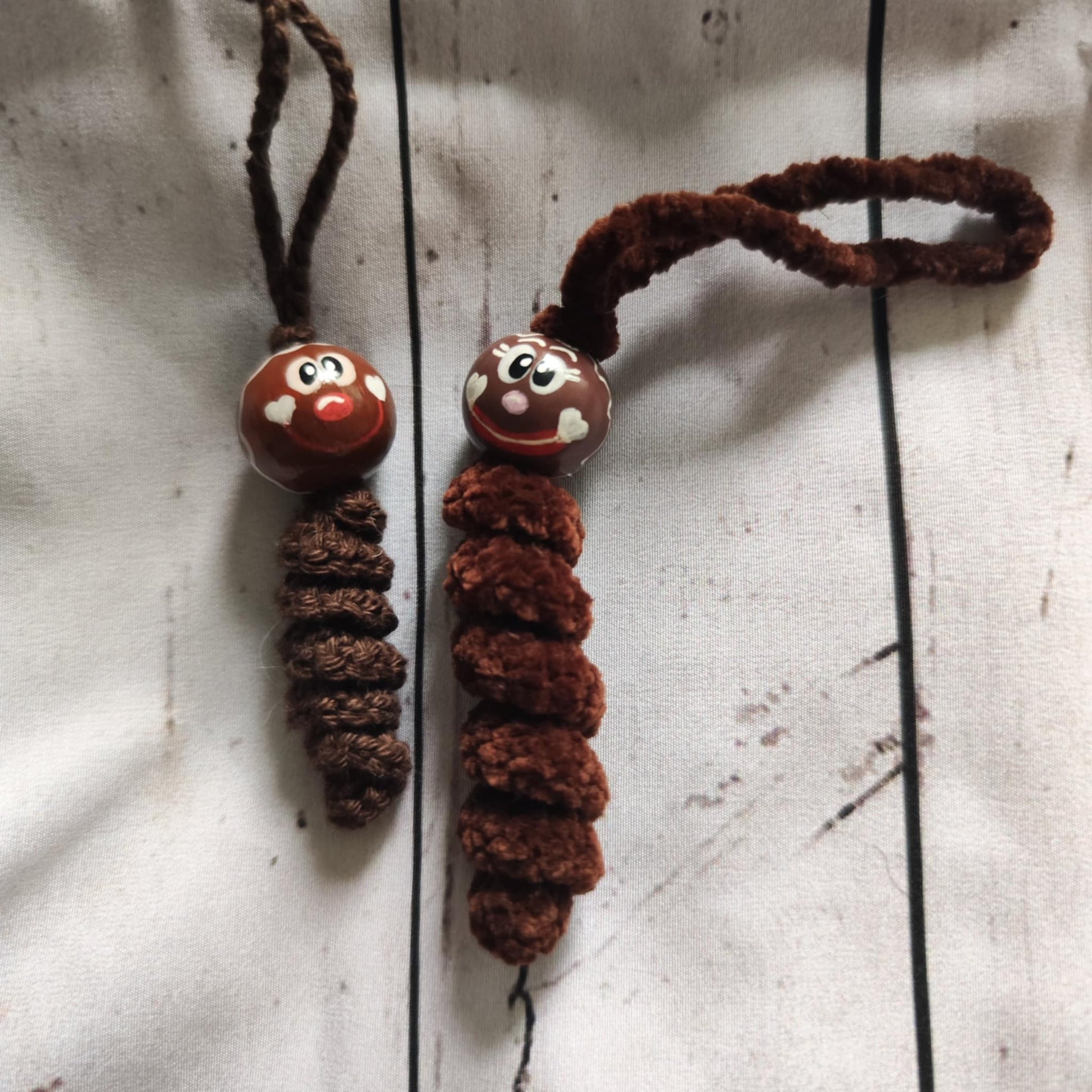 Der Kopf hat einen Durchmesser von 2 cm, das Würmchen ist dadurch etwa 6–9 cm lang (ohne Schlaufe). Da jedes Würmchen liebevoll von Hand gehäkelt und bemalt wird, kann es zu leichten Größen- und Farbabweichungen kommen – genau das macht dein Würmchen zum echten Unikat!