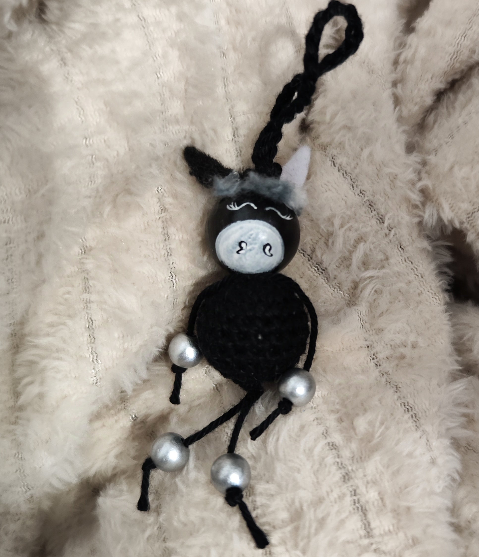 Dieses Sorgenwürmchen im klassischen Rappen-Look verzichtet bewusst auf Plüsch, aber nicht auf Charakter. Der tiefschwarze Garnkörper, kombiniert mit einem handbemalten 2-cm-Holzkopf, macht es zum Lieblingsstück für alle, die Reduktion schätzen – und dennoch etwas Besonderes suchen.
