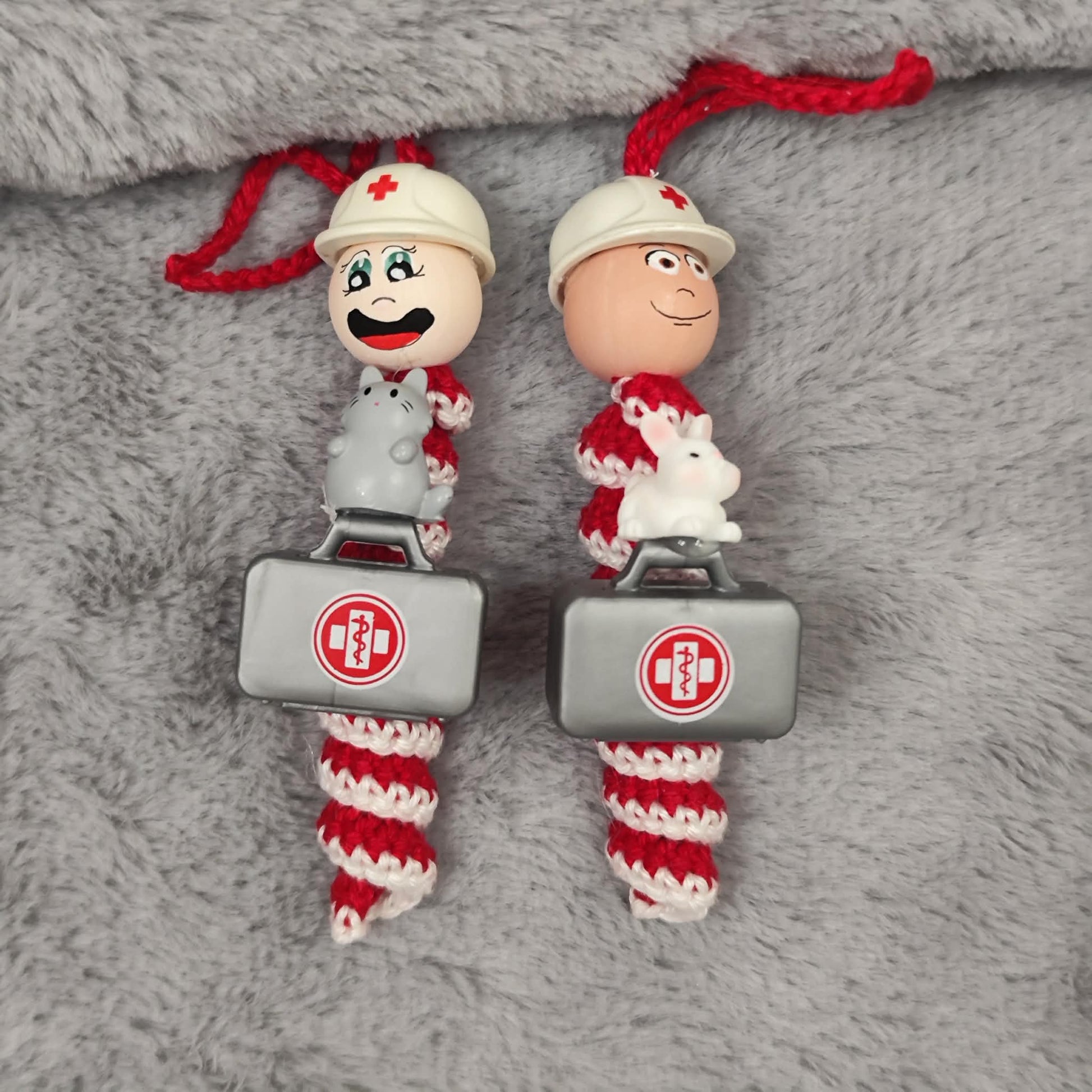 Was macht sie besonders? Jedes Würmchen wird von mir selbst gehäkelt und der Holzkopf von Hand bemalt. Der kleine Notfallkoffer und die Tier-Figur (graue Katze oder weißer Hase) machen aus jedem Würmchen einen echten Tierretter. Kein Würmchen gleicht dem anderen – jedes hat seinen eigenen Charakter und Ausdruck. Die weiße Sanitäter-Kappe mit rotem Kreuz aus Kunststoff macht das Ganze perfekt!