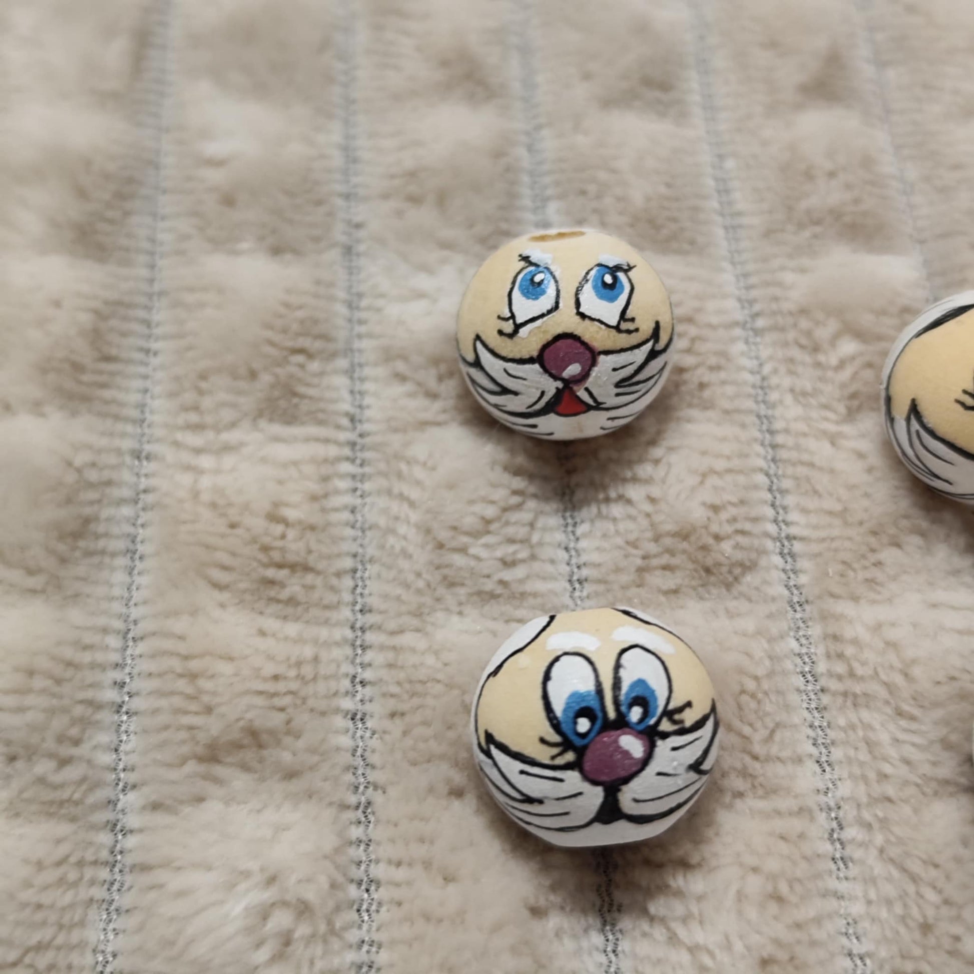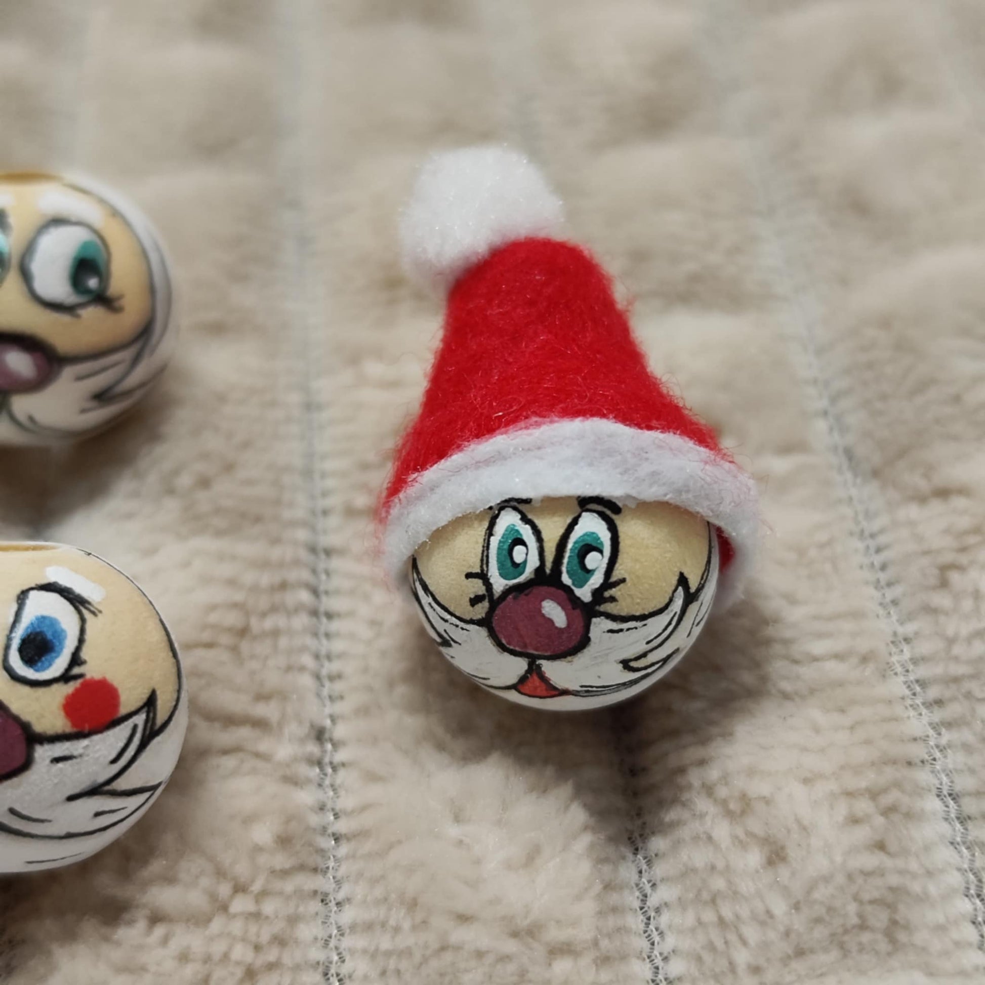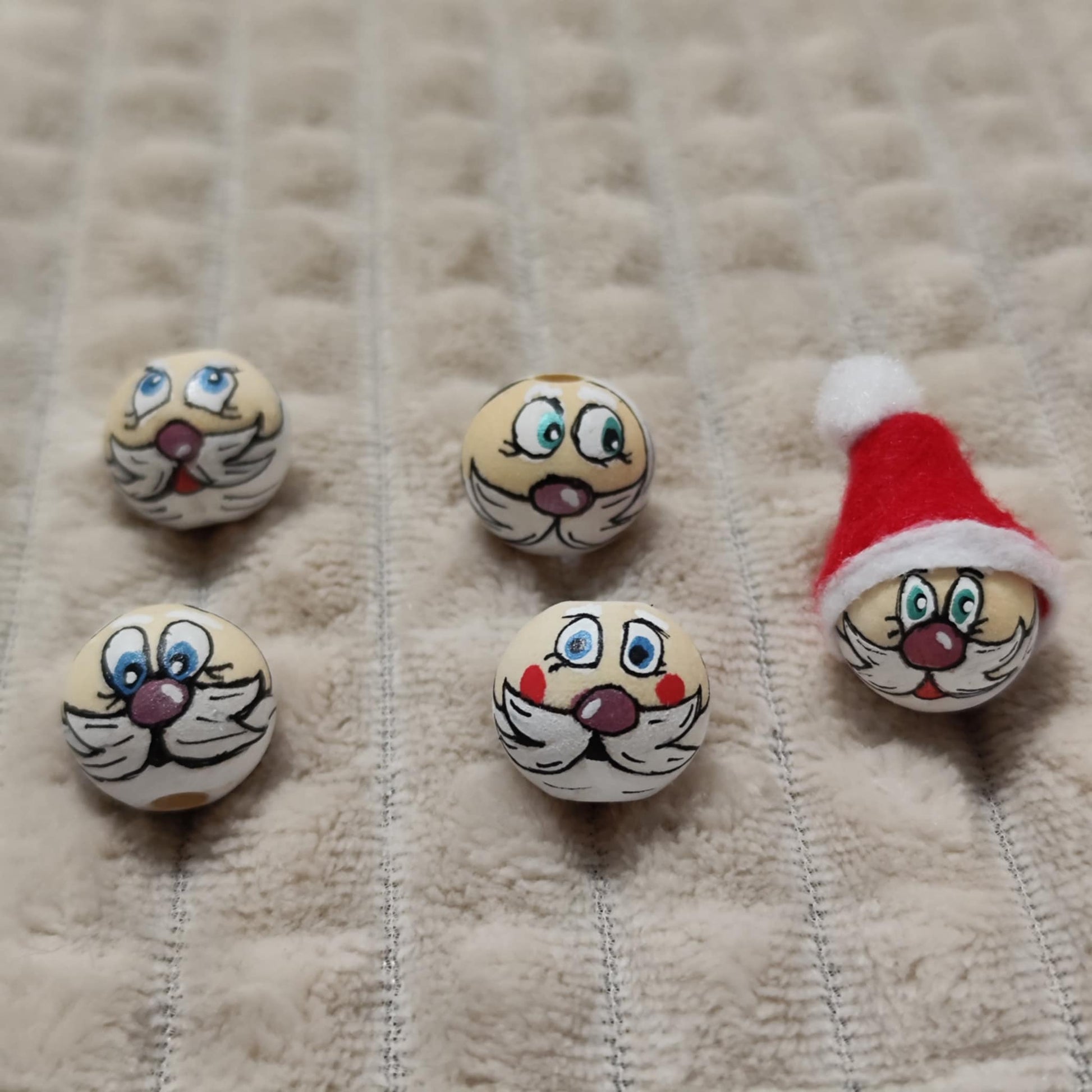 Diese handbemalten Weihnachtsmann-Köpfchen im 5er-Set bringen klassischen Weihnachtszauber in dein DIY-Projekt. Jedes Gesicht ist mit blauen Augen und liebevollen Details bemalt – perfekt geeignet für kreative Bastelideen wie Sorgenwürmchen, Geschenkanhänger oder kleine Dekoelemente.