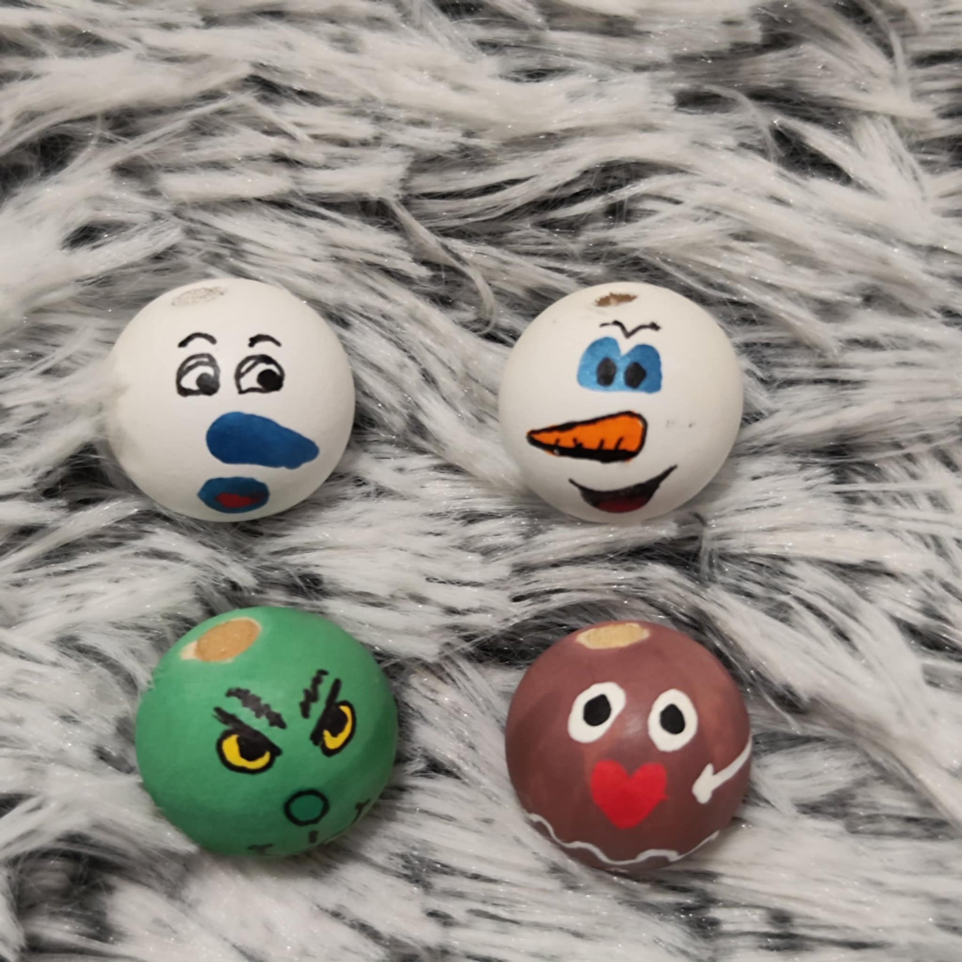 Vier ikonische Wintercharaktere in einem liebevoll handbemalten Set: Dieses 4er Winter-Mix-Set kombiniert einen klassischen Schneemann, einen Frosti mit verschmitztem Blick, ein süßes Lebkuchengesicht und den unverkennbar grantigen Grinch. Perfekt für winterliche Sorgenwürmchen, kreative Deko oder DIY-Projekte mit augenzwinkerndem Charme.